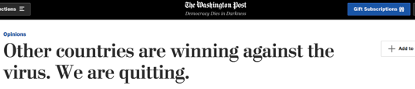 成千上万的美国人在死去,而总统做了什么呢?散布不实信息。传播错误希望。重新创造历史,重新幻想科学,对自以为是的英雄主义喋喋不休,抱怨自己所做的牺牲以及攻击任何质疑他的人。没有领导力,只有哗众取宠。没有共情,只有窃笑。就这样,他还想要连任。